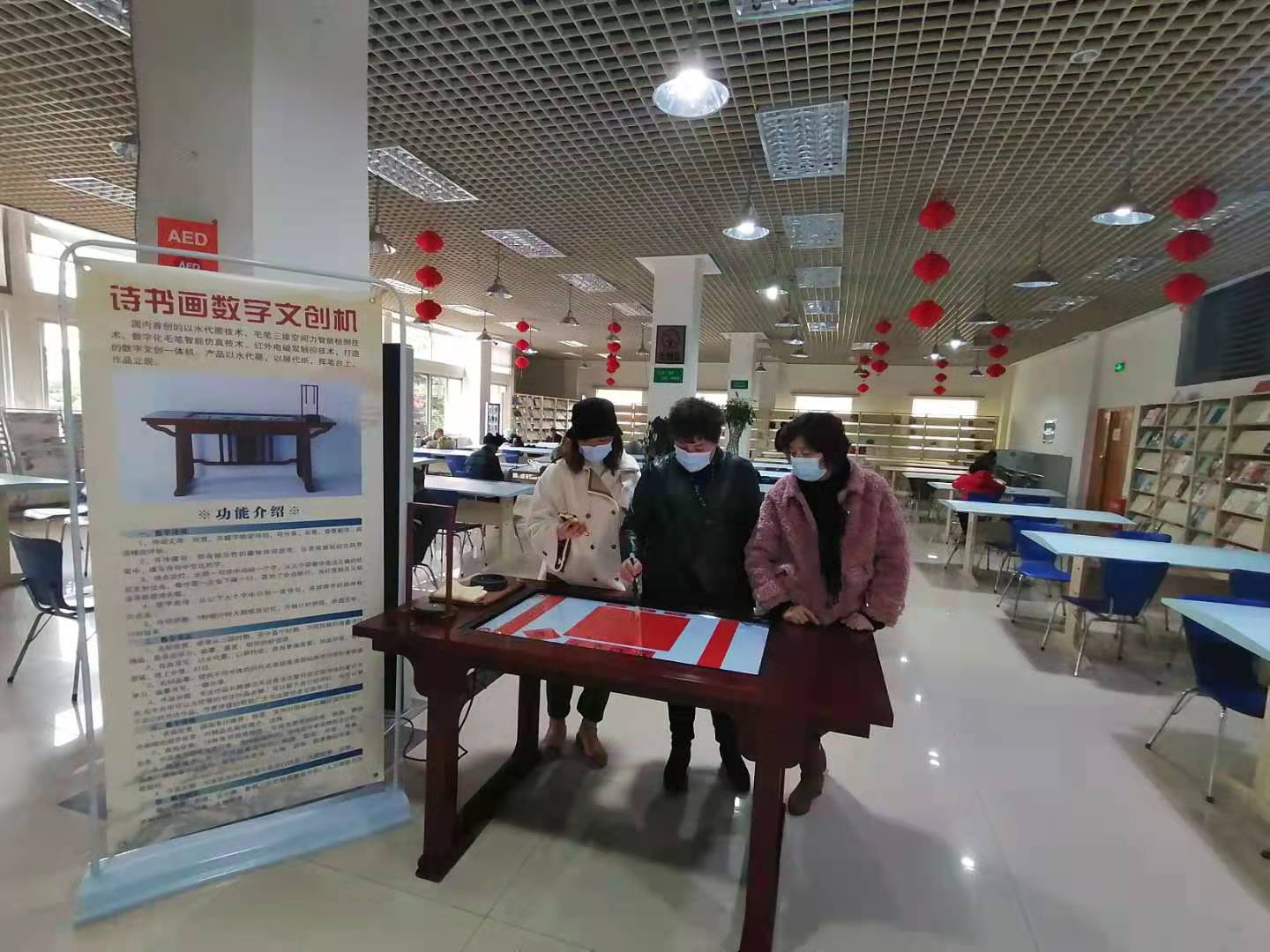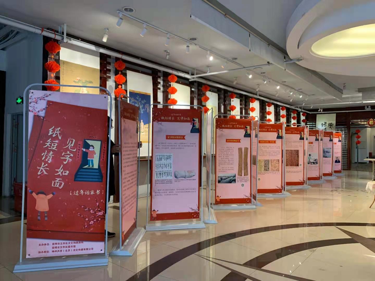 报刊阅览室配置了“诗书画数字文创体验机”,此数字文创体验机为云南首家为公众提供的免费数字文创产品,以水代墨,以屏代纸,挥笔台上,作品立现。二楼公共空间举办“纸短情长见字如面——过年话家书”文化展览。
