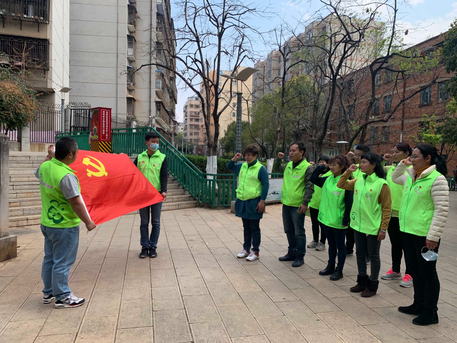 活动最后,参加本次活动的党员志愿者们,面对党旗,庄严地重温了入党誓词。