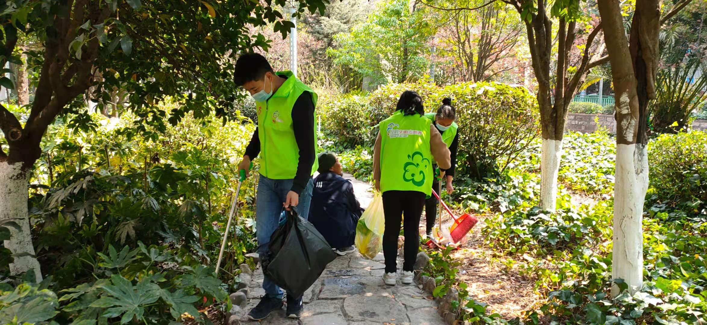 志愿者们在捡拾垃圾