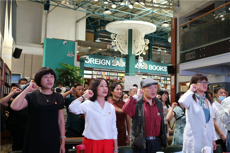 七月的昆明不仅书香弥漫,也沉浸在一片红色的喜悦里。正值建党100周年之际,读书会上,大家重温入党誓词,铿锵有力的誓言回荡在读书会现场,一字一句,神圣而豪迈,表达了对党的忠诚和热爱,传承了建党百年的红色精神。