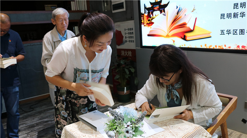 本次读书会也是半夏新书《悬铃木咖啡馆》的首发式,互动环节过后,观众纷纷带着《悬铃木咖啡馆》和半夏的经典作品《与虫在野》到台前请半夏签名,半夏除了签名,还认真地写下对读者的祝福。大家纷纷表示,通过读书会,对“老昆明”和“虫虫世界”有了更为深刻的了解,感受到了好书的魅力。