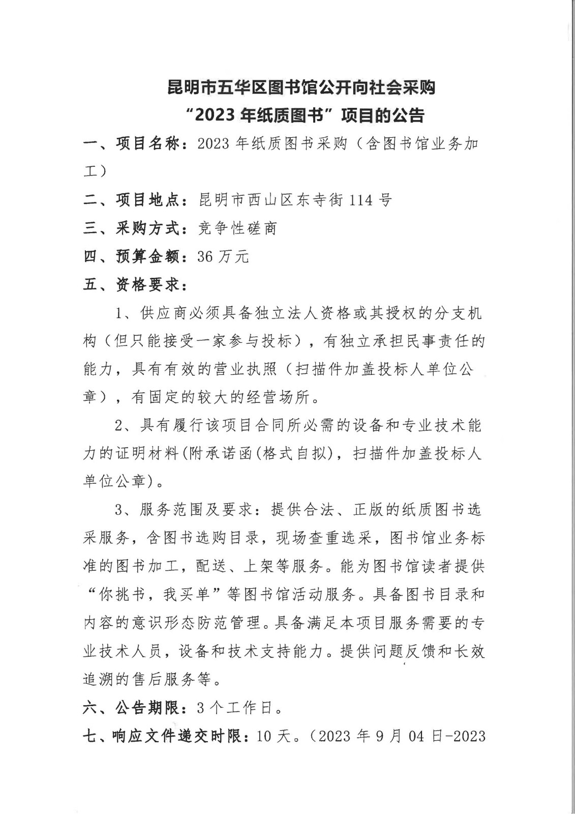 昆明市五华区图书馆公开向社会采购“2023年纸质图书”项目的公告