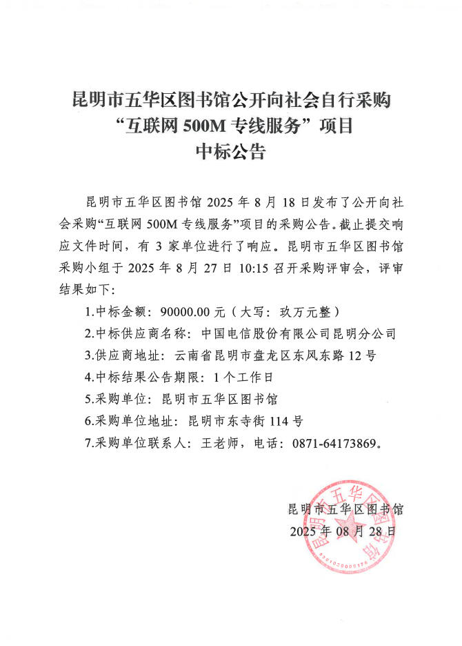 2025年五华区图书馆互联网500M专线服务中标公告.pdf